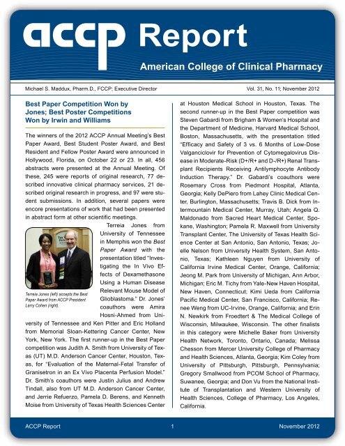 Best Paper Competition Won By Jones Best Poster - Accp